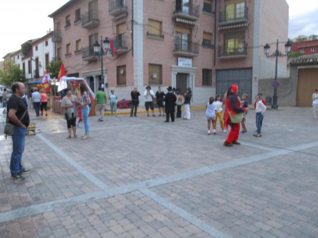 Bufón y niños en el mercado medieval,