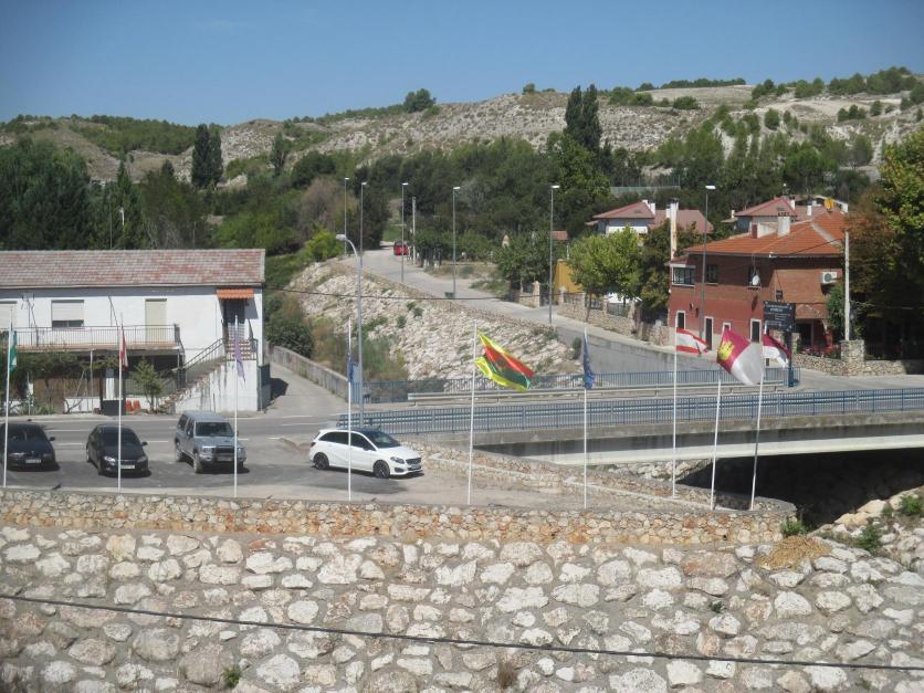 Banderas, puente y carretera en dirección a Albares,