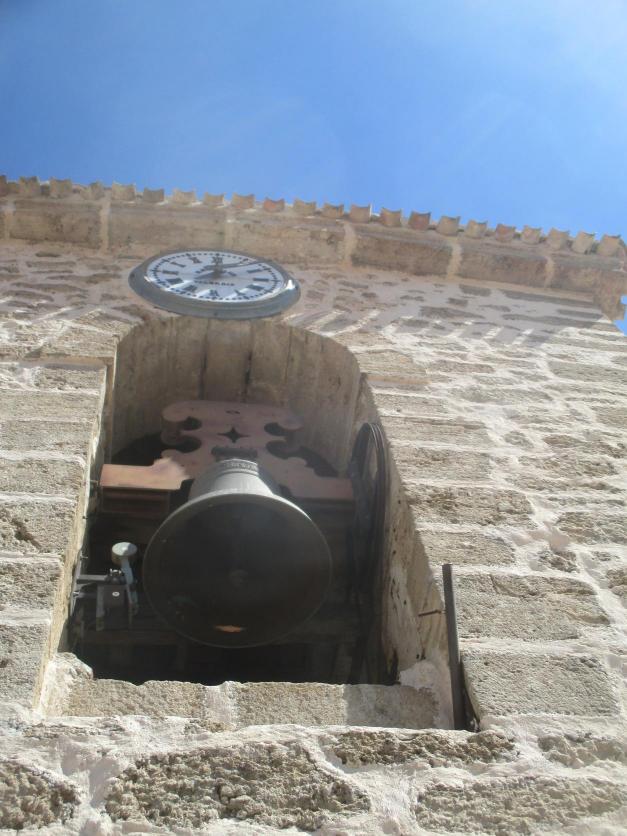 Campana y reloj en la torre de la iglesia,
