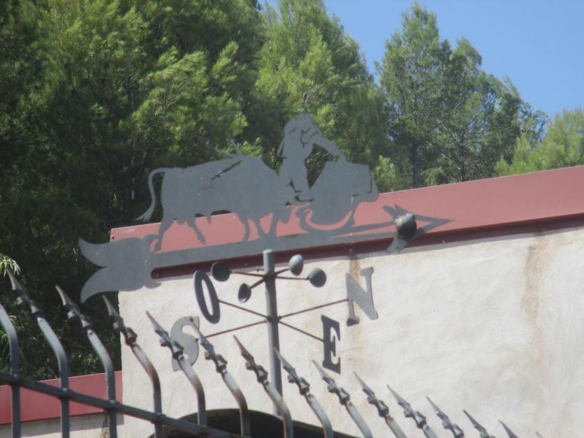 Original veleta de un torero y un toro,