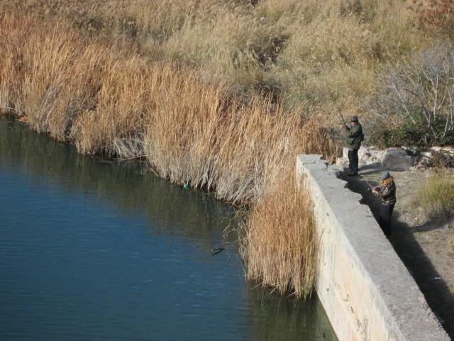 Pescadores en el río Tajo al otro lado de la presa,