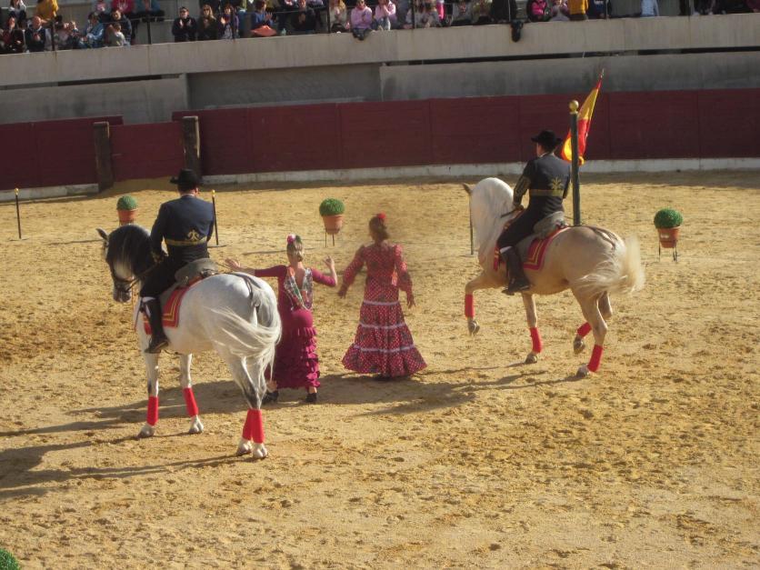 Bailarinas y caballos danzando por sevillanas,