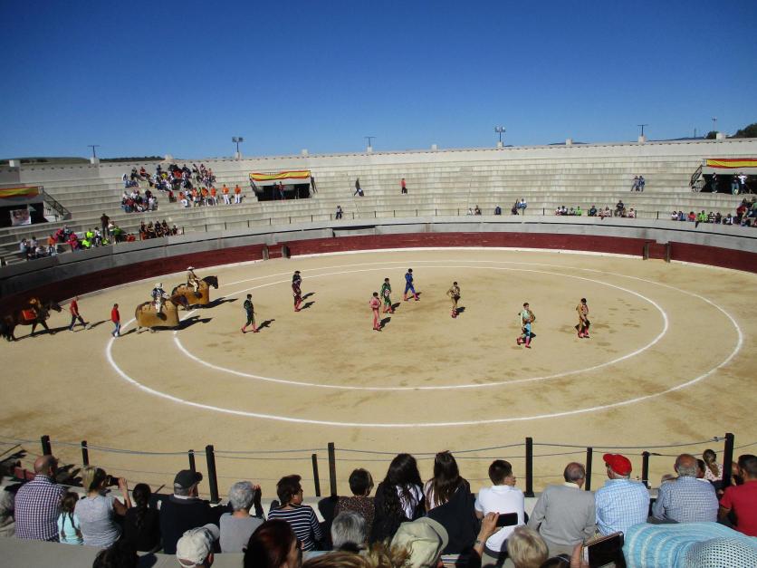 Paseillo de los novilleros y sus cuadrillas en la plaza de toros de la localidad,