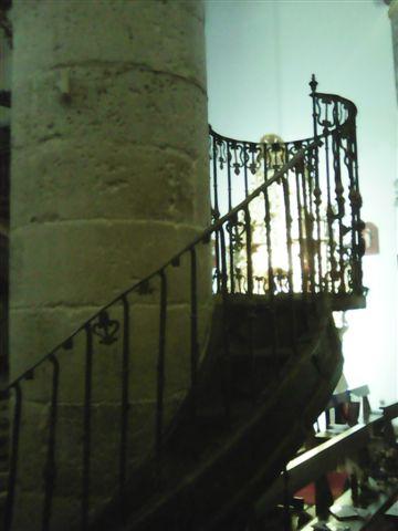 Escalera metálica en el interior de la iglesia de la Asunción,
