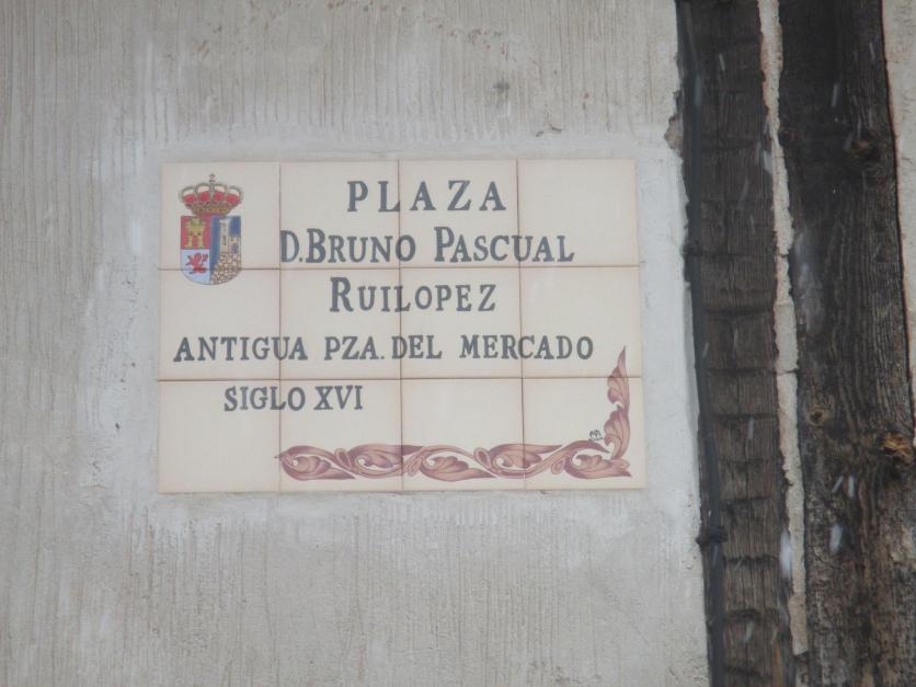 Placa en la plaza del Mercado con sus dos denominaciones,