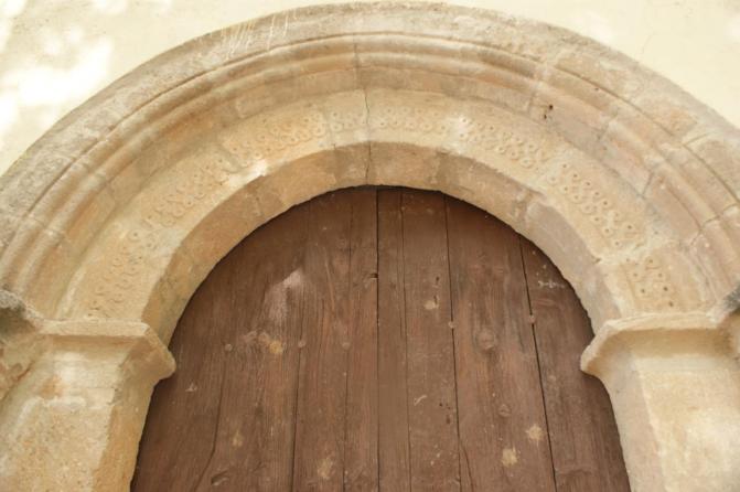 Se compone de dos arquivoltas de medio punto, con decoración de entrelazados u ochos