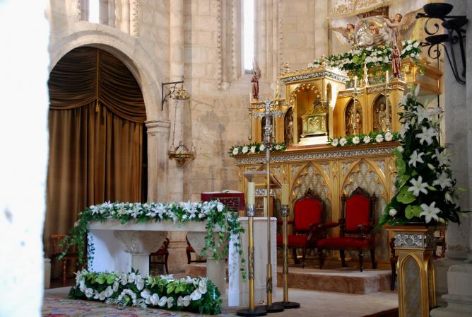 Altar preparado para la misa,