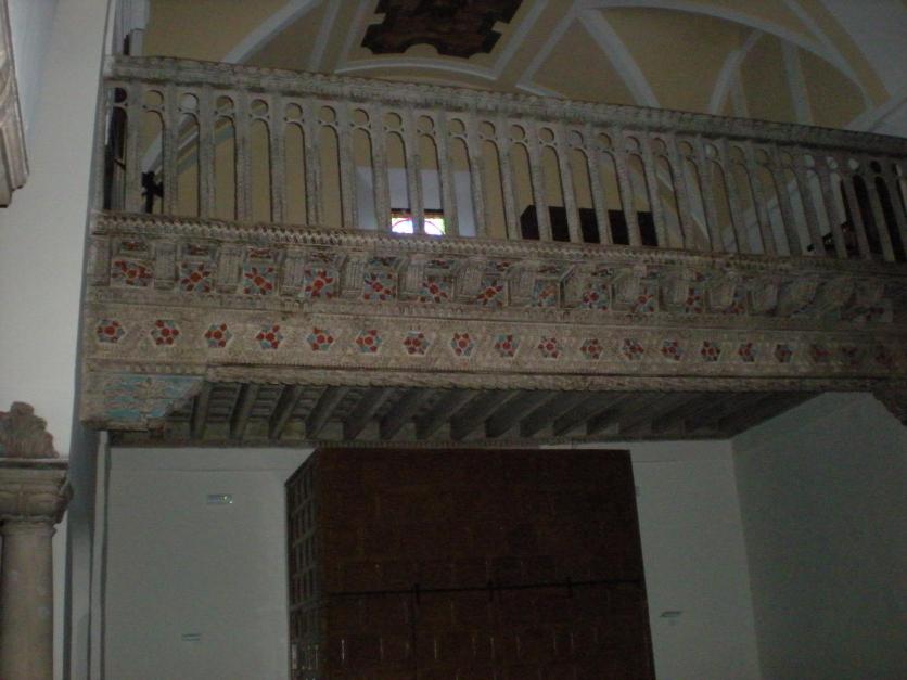 Policromado y con profusión de minucia decorativa, en el antepecho del coro. La viga maestra se cubre de ornamentación en estrellas y entrelazos, lo mismo que otras vigas laterales.