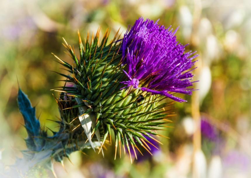 Cardo mariano en flor,