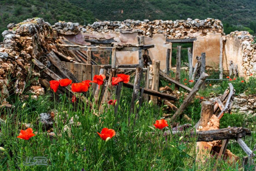 Ruinas con amapolas,