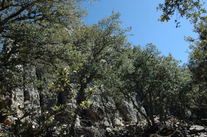 peña menar oculta entre las encinas,