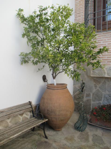Tinaja reconvertida en una original maceta,
