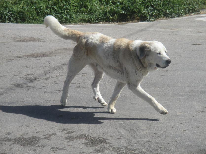 Mastín procurando que no haya animales rezagados,
