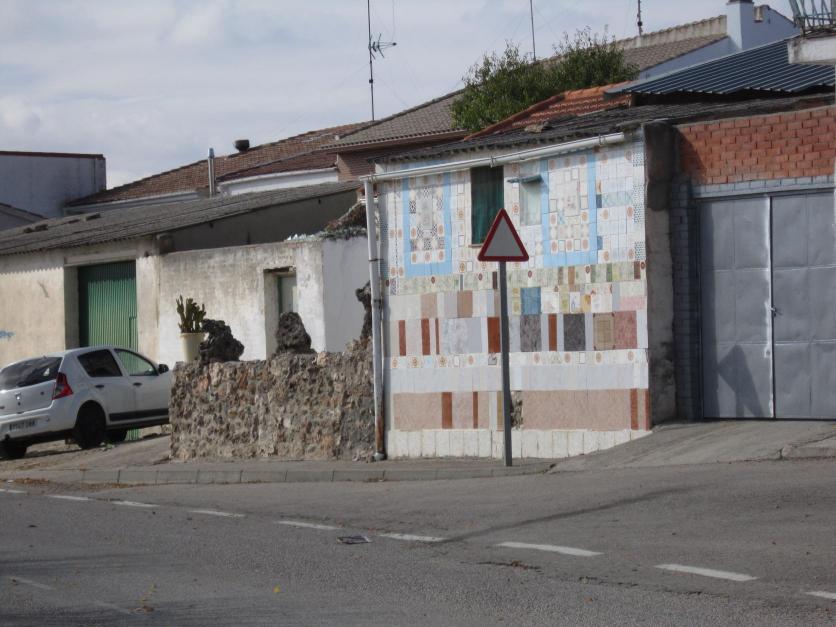 Curioso muro alicatado con distintos tipos de azulejos,