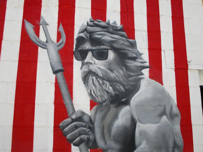Primer plano del mural Neptuno pintado por Mazo,