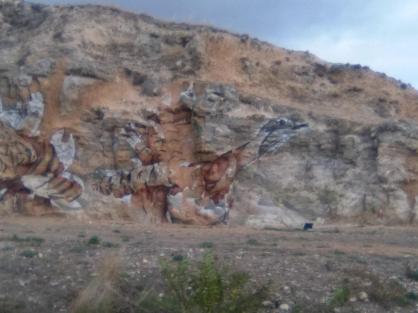 Vetas de la antigua yesería sobre las que se ha pintado el mural,