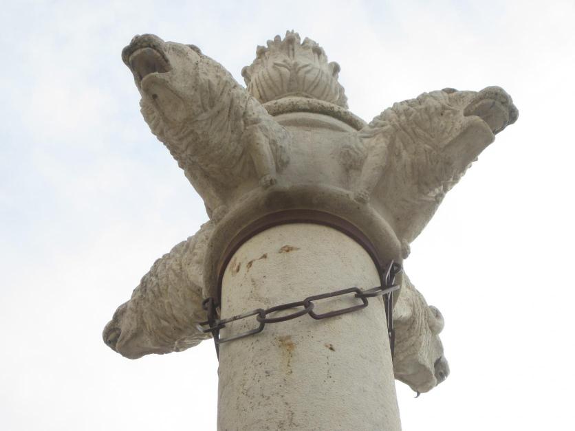 Capitel de la picota con cuatro cabezas de león,