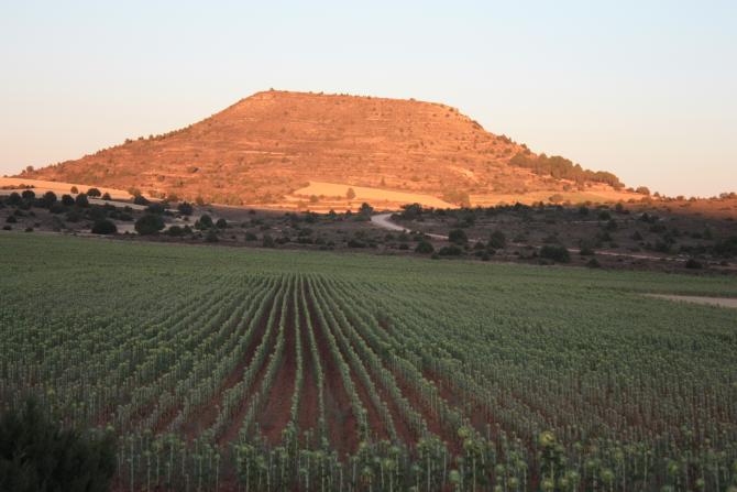Girasoles y de fondo la cantera,