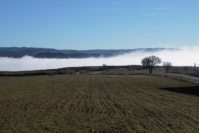 Campos cubiertos de niebla,
