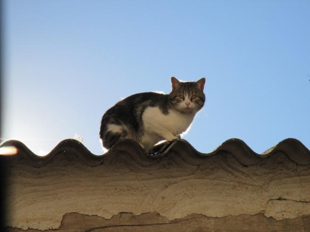 Gata sobre un tejado en la calle de la Iglesia,