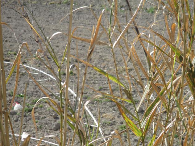 Langosta camuflada comiéndose una planta,