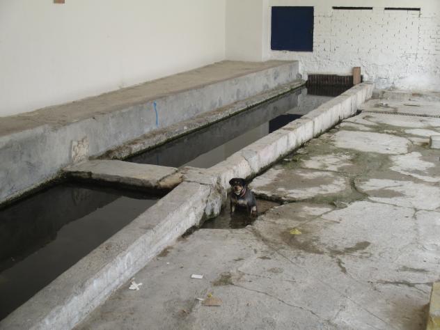 Mi perrita refrescándose en los pilones,