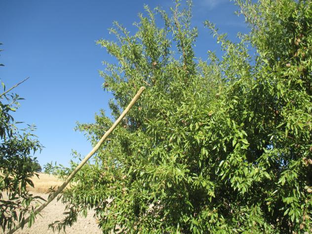 Vareando un almendro,