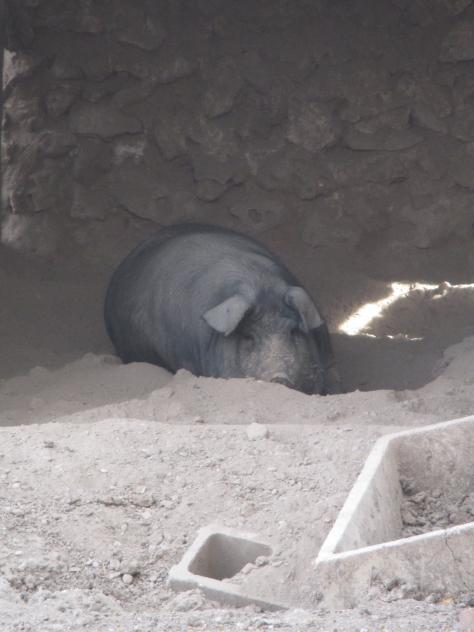 Cerdo en un corral,
