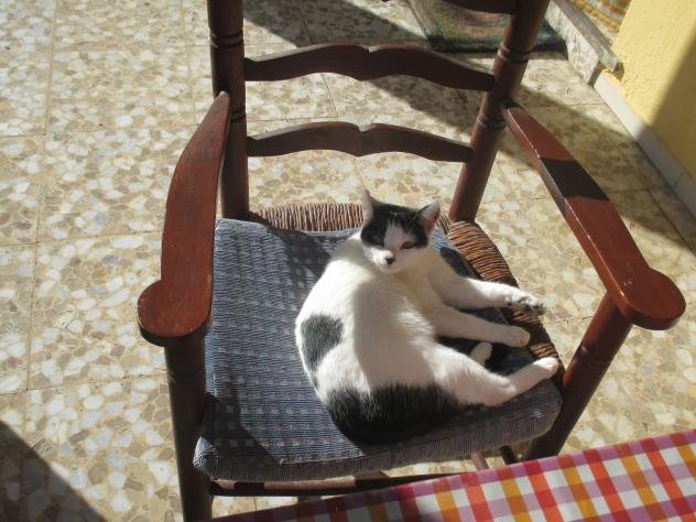 Gata bien instalada al sol otoñal,