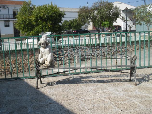 Estatua colocada sobre un banco,