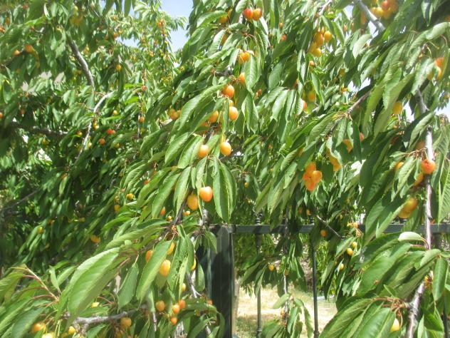 Cerezo lleno de frutos madurando,