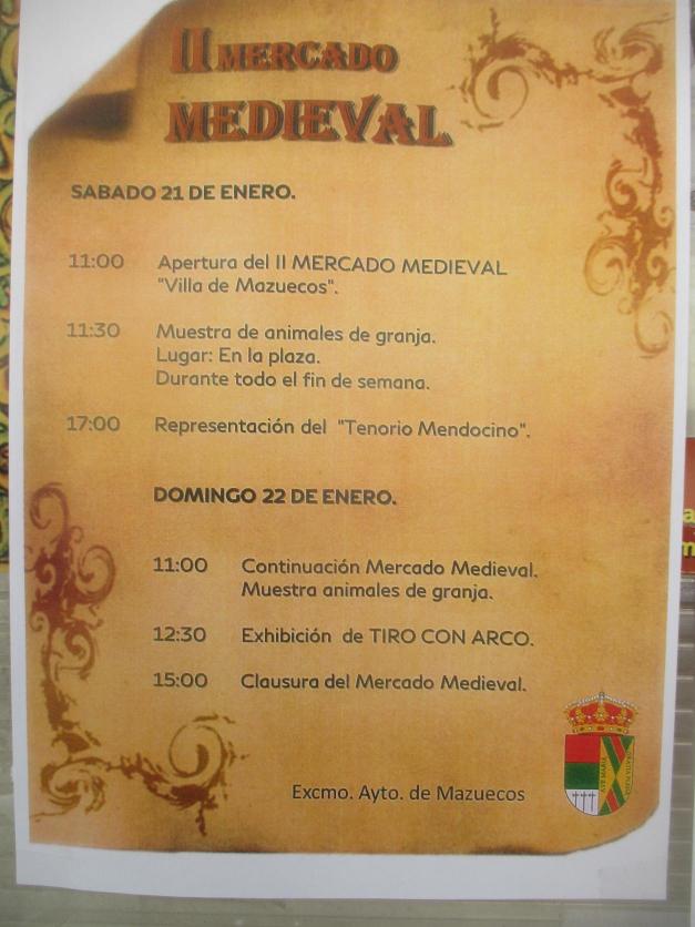 Actividades programadas durante la celebración del II Mercado Medieval,