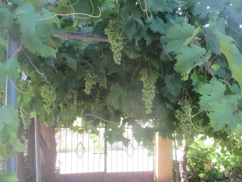 Parrón repleto de racimos de uva blanca de mesa,
