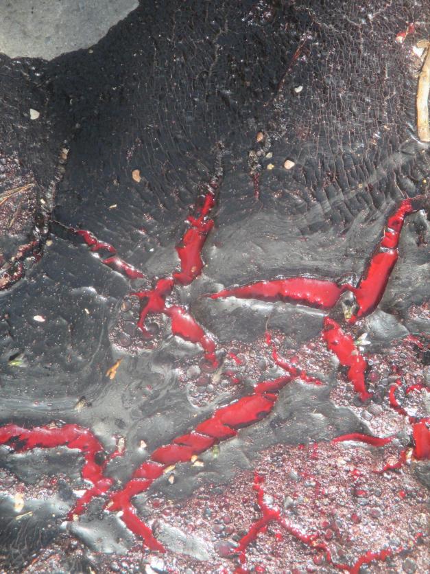 Suelo manchado con sangre de los toros,