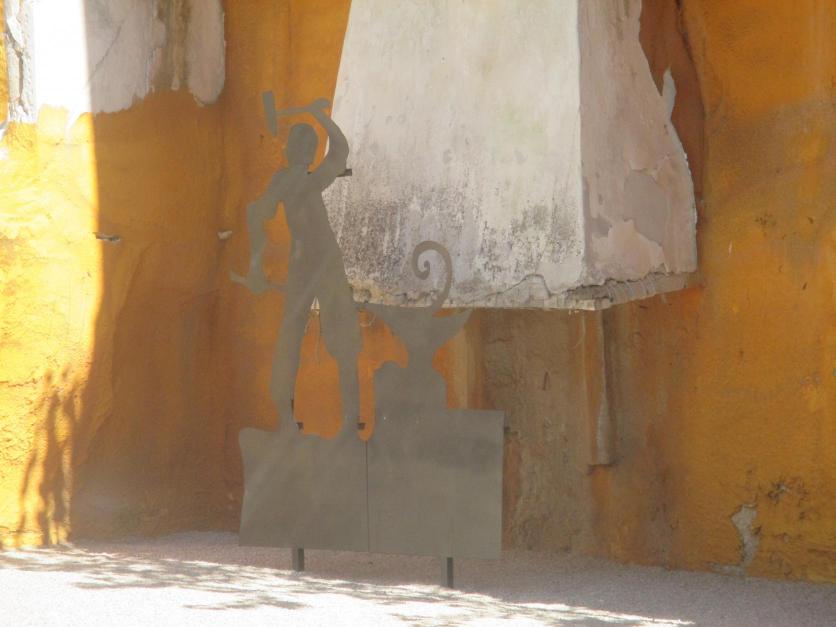 Silueta metálica de un herrero con el yunque en terreno municipal,