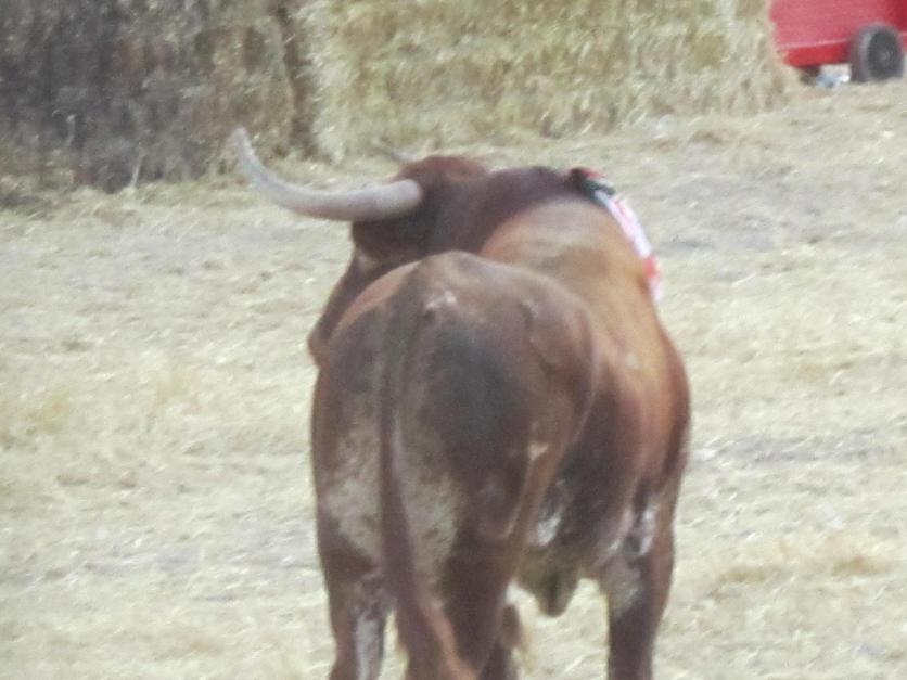 El bonito ejemplar de toro en un momento del encierro,