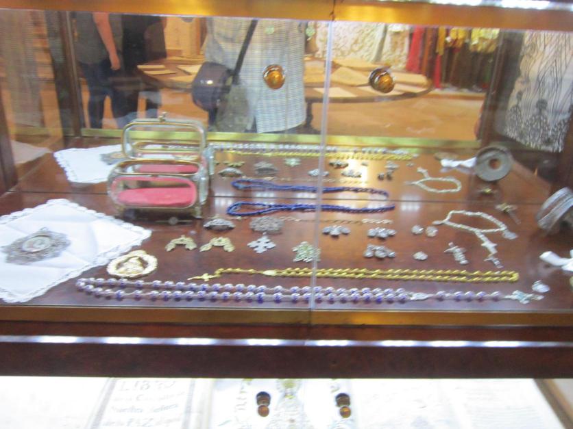 Ofrendas y rosarios donados a la Virgen de la Paz,