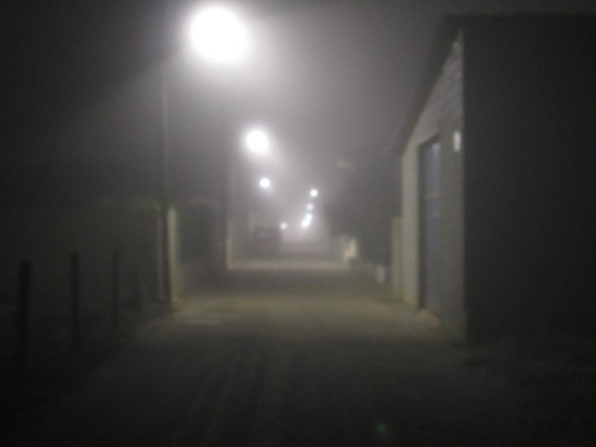 Calle de la Fuente cubierta por la niebla,