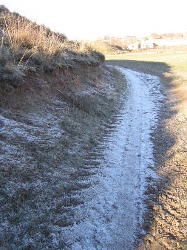 Un camino de tierra completamente helado,