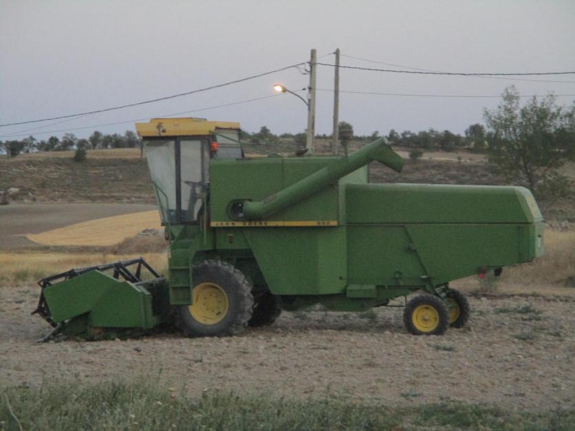 Cosechadora John Deere aparcada en un campo,