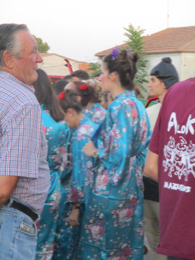 Peñistas antes del desfile de carrozas,