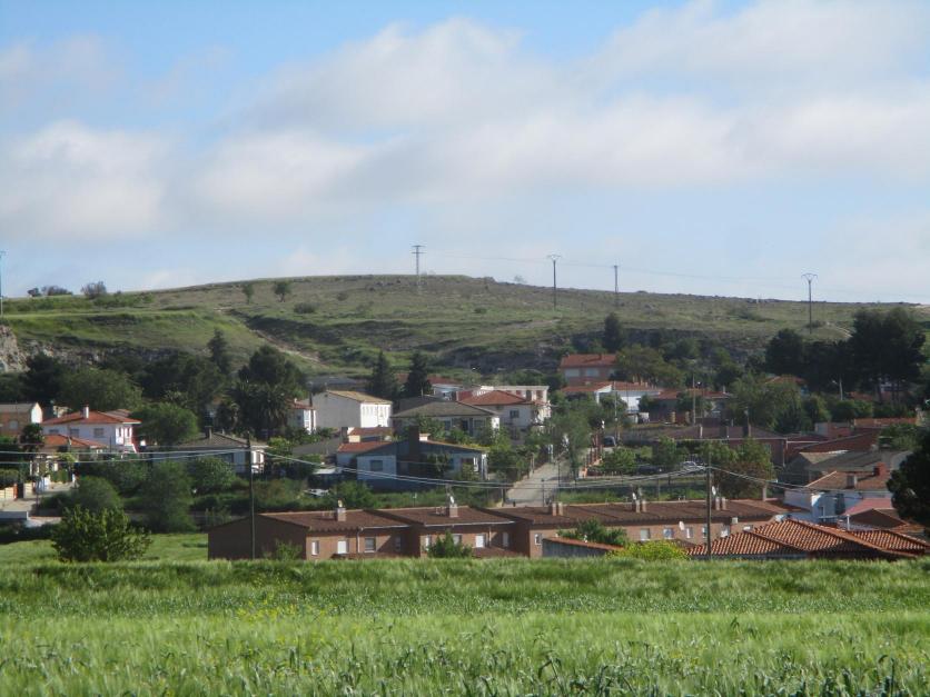 Vista del pueblo desde un campo en las afueras,