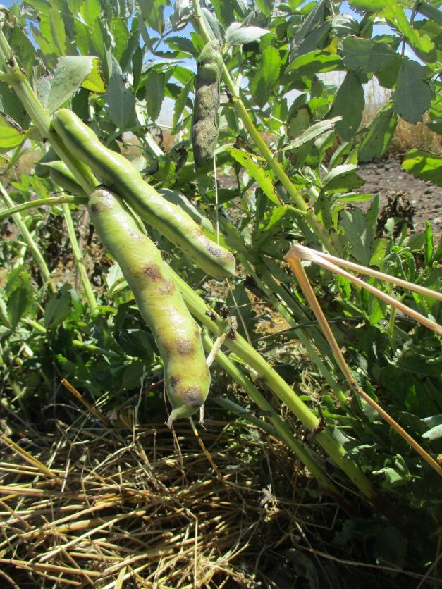 Vainas de alubias en la mata,