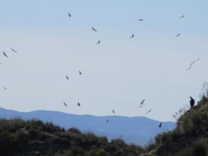 Bandada de buitres sobre el municipio,