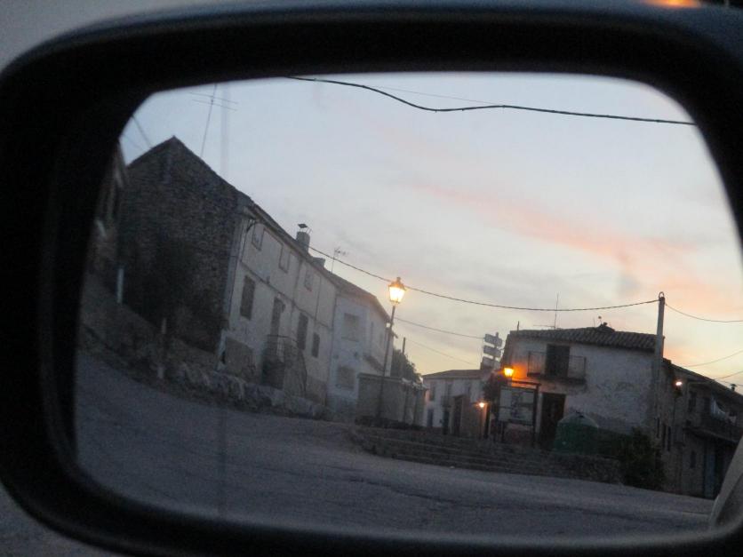 Vista del pueblo desde el espejo retrovisor,