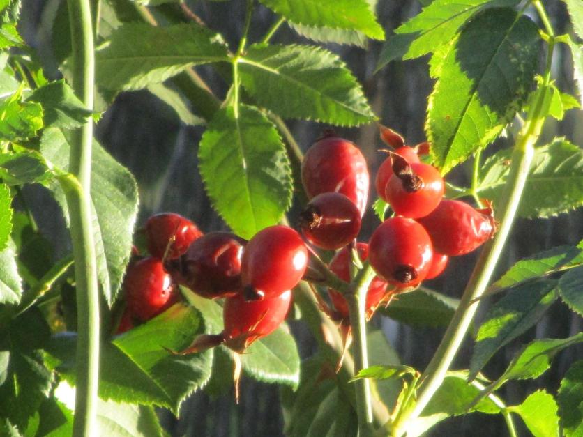 Coloridas semillas de un rosal,