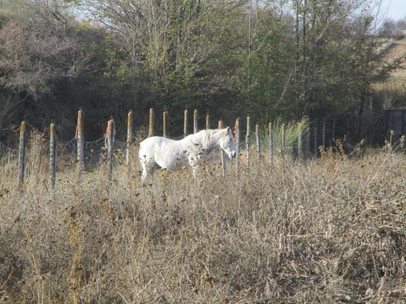 Finca con un caballo pastando,