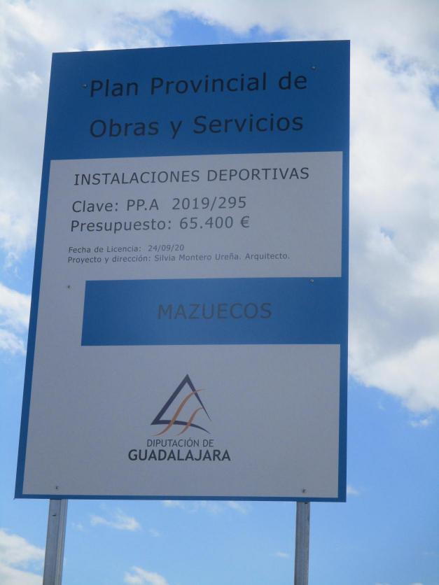 Cartel informativo sobre el costo de la piscina municipal y su financiación,