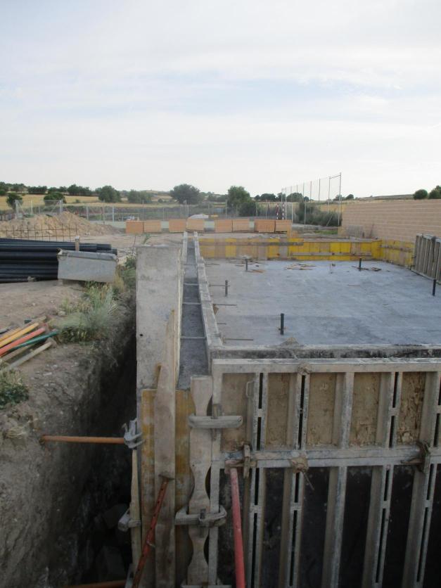 Trabajos de encofrado en el agujero de la piscina municipal,