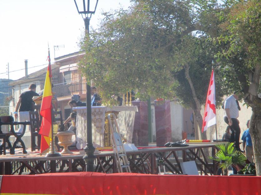 Preparando el escenario en la Plaza de España,